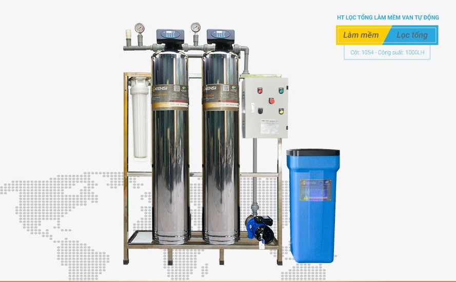 Giới thiệu hệ thống lọc nước tổng gia đình 2 cột inox van tự động 1000LH