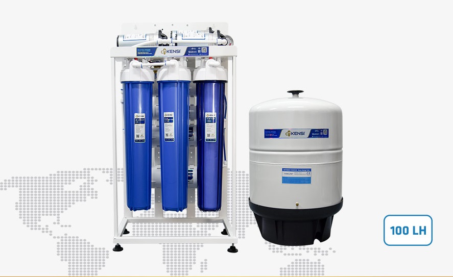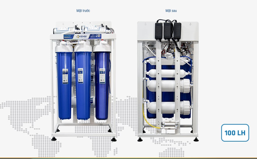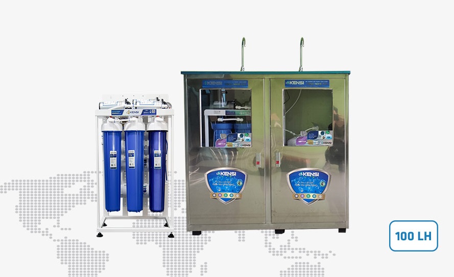 Máy lọc nước 100 lít/giờ là sản phẩm do Công Ty Tekcom sản xuất bằng công nghệ lọc nước RO tiên tiến. Máy lọc nước Kensi đạt tiêu chuẩn ISO 9001:2008, nguồn nước sau khi được lọc qua máy lọc nước Kensi đạt tiêu chuẩn của Bộ Y Tế, Viện Paster, tổng cục tiêu chuẩn đo lường chất lượng về nước khoáng thiên nhiên và nước uống đóng chai.