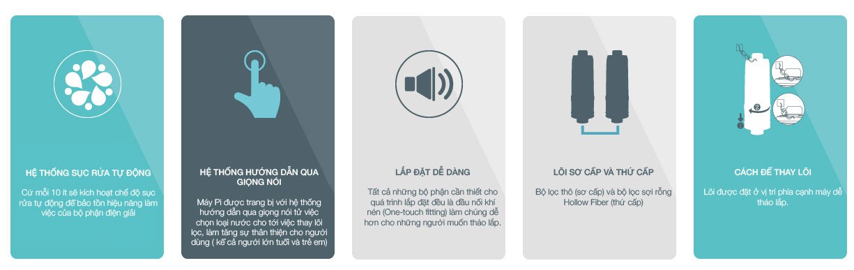 | E-Cleaning | Vệ sinh tự động thông minh sau mỗi 10 lít nước, quá trình làm sạch khoảng 30 giây |