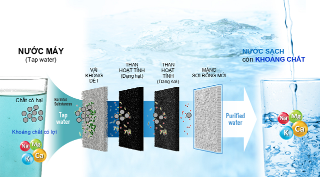 Nước máy sau khi qua lọc sẽ loại bỏ hết các chất độc hại, trở thành nước sạch. Và quan trọng nhất là nước sạch này còn nguyên vẹn 100% có lợi cho sức khỏe. Lõi lọc tinh của SMART I8 có khả năng loại bỏ 13 chất độc hại theo quy định của Tiêu chuẩn công nghiệp Nhật Bản (JIS).