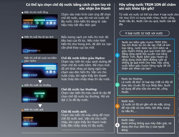 Ngoài ra, hãng Nihon Trim cũng sở hữu công nghệ độc quyền tạo nước giàu Hydro bằng Nguyên lý điện giải kép. Chuyên gia về nước sức khỏe, nước là sự sống của tập đoàn Nihon Trim. Toàn bộ các kinh nghiệm và thành tựu y khoa tại hiện trường đã được đúc kết ở từng giọt nước, đó là lý do Nihon Trim được người tiêu dùng tại Nhật Bản tin tưởng và sử dụng.